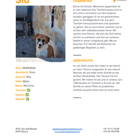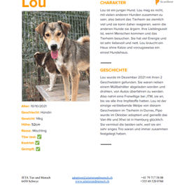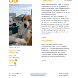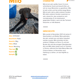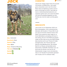 Bei Interesse bitte kontaktiert unter adoption@jetatierundmensch.ch direkt an verein@jetatieurndmensch.ch