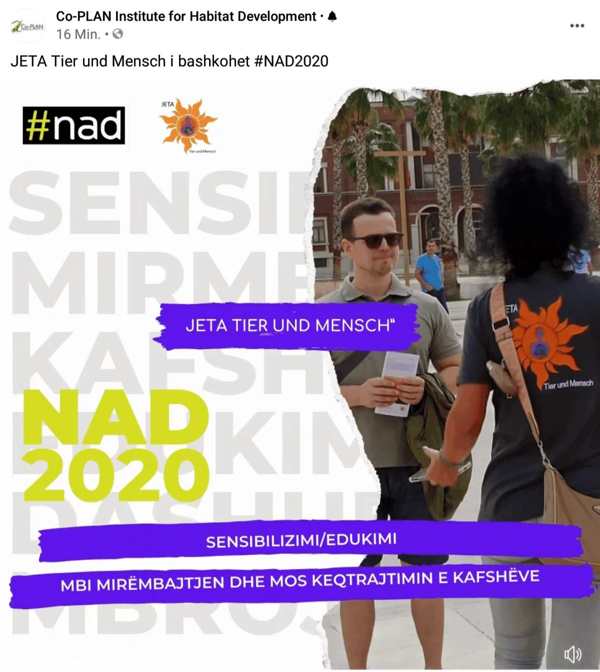 JETA Tier und Mensch ist eine gemeinnützige Organisation, die eine Lebensverbindung zwischen verstoßenen Tieren und Menschen erschaffen möchte. Wir sind die Stimme der Strassentiere in Albanien, Tiere, die selber nicht sprechen können, aber auf unsere Hilfe angewiesen sind. Strassenhunde sind in Albanien nach wie vor in sehr großer Zahl vorhanden, auch wenn 90 Prozent von ihnen in einer Familie gelebt haben, bevor sie verstoßen wurden.